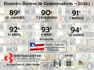 Calendário completo do Encontro Baiano de Colecionadores, do primeiro semestre de 2026 que acontece no Shopping Brotascenter. Você é nosso